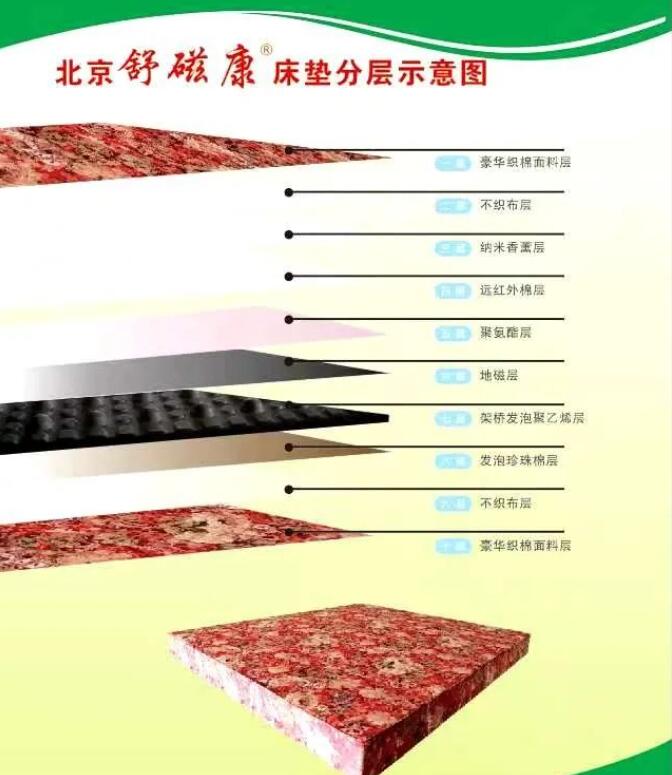 北京舒磁康豪華型,舒適型床墊結構總共十層,寓意十全十美型: